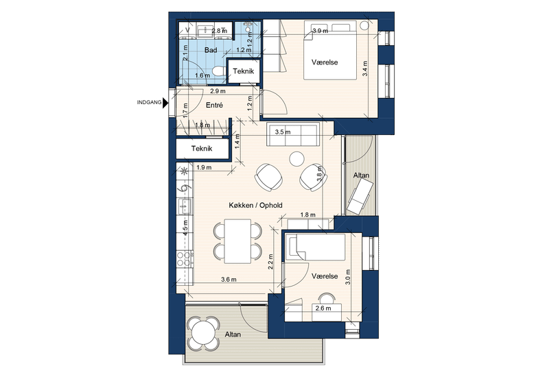 14.000 kr/måned, min. 3 værelser
