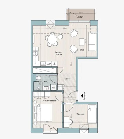 16.000 kr/måned, min. 3 værelser
