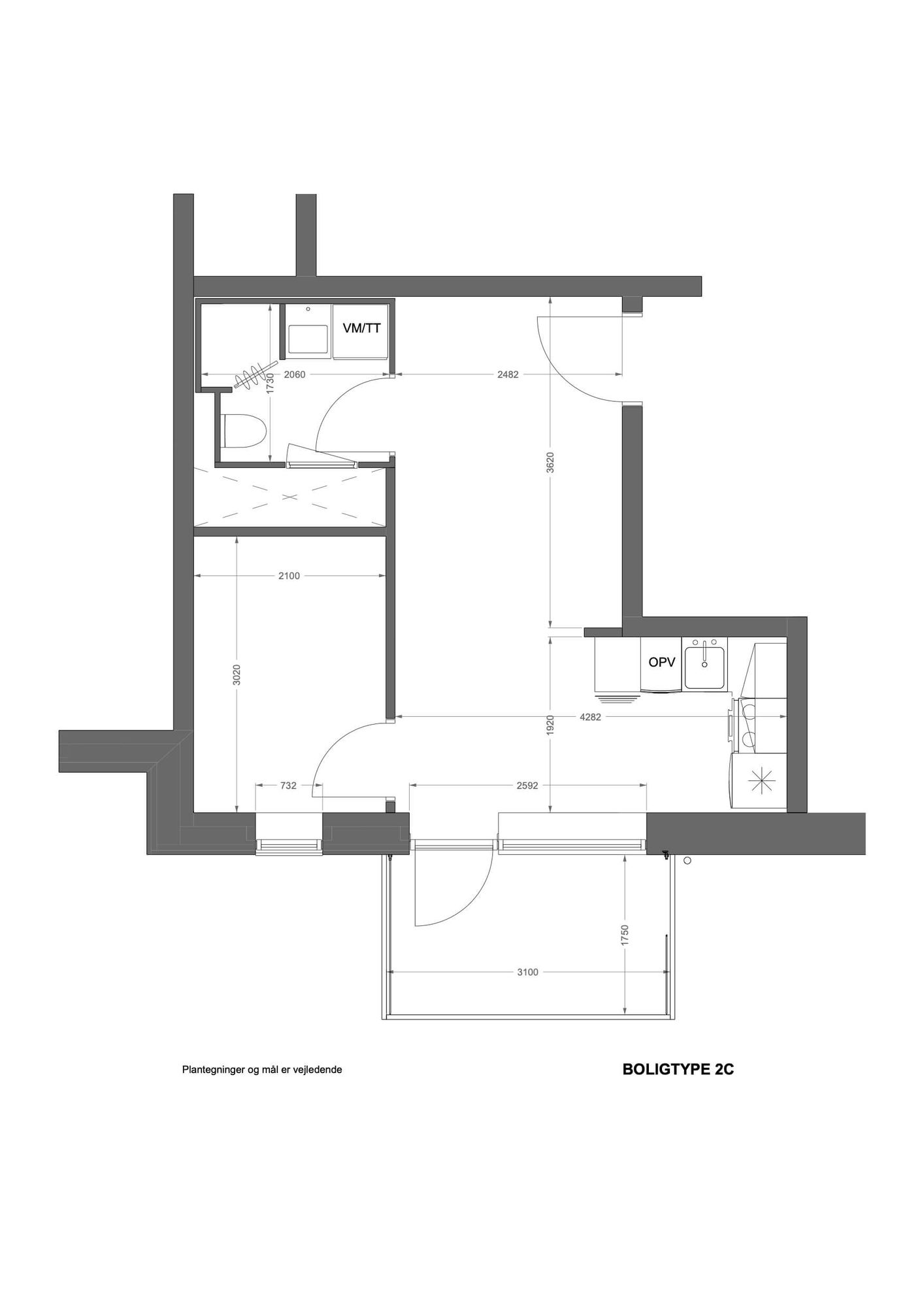 7,000 kr/month, min. 2 bedrooms