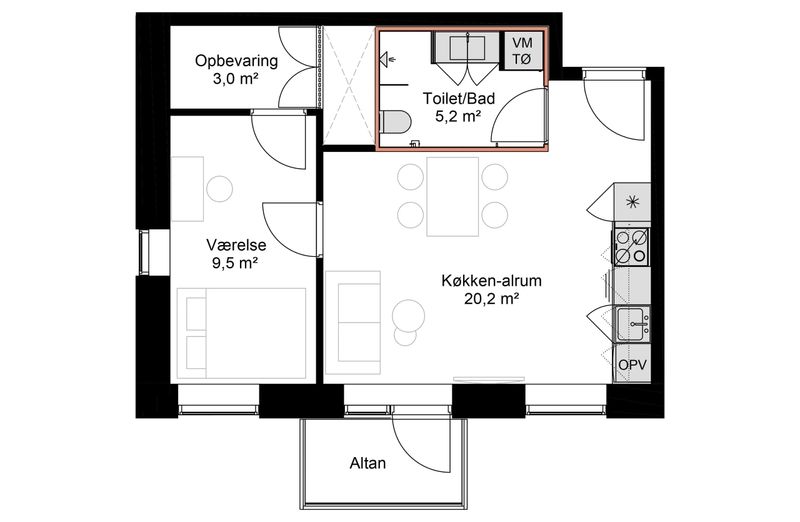 8,000 kr/month, min. 2 bedrooms