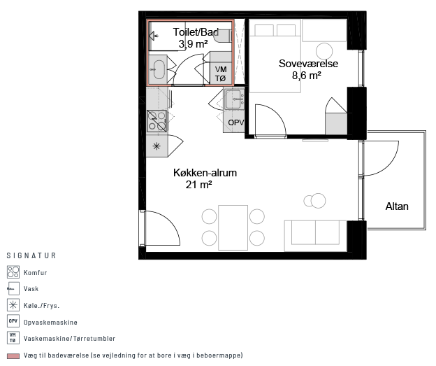 8,000 kr/month, min. 2 bedrooms