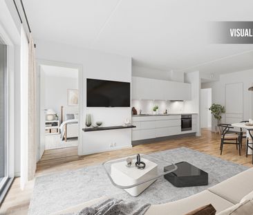 Lejlighederne i stueplan har egne private terrasser. De ø...